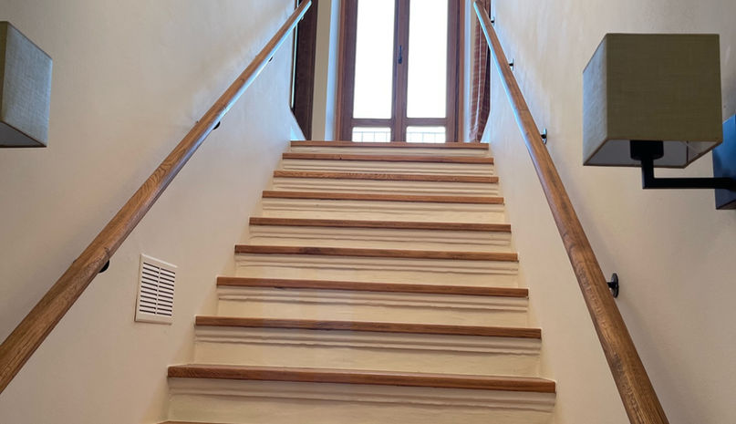 Via de trap bereikt u de eerste verdieping met vier 2-persoonsslaapkamers en 2 badkamers.